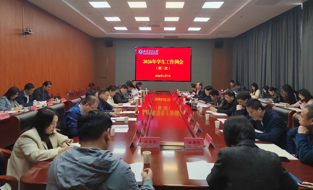 4月7日下午,学校在长山校区行政楼200号会议室召开了2026年第三次学生工作会议。校党委常委、副校长胡爱祥出席会议并讲话,学生处处长朱金主持会议。学校相关职能部门负责人,各学院(所、校区)分管学生工作领导及学生处各科室负责人共同参会