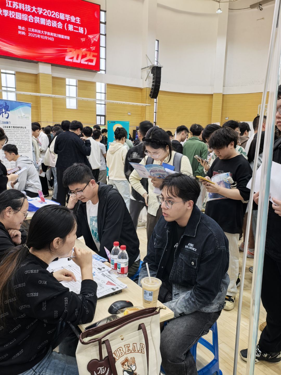 现场参会单位涵盖央企、国企、上市公司及行业领军企业,充分彰显社会各界对我校人才培养质量的高度认可。洽谈会现场秩序井然、交流热烈:毕业生手持精心打磨的简历,主动与企业HR深入沟通岗位要求、职业发展路径及薪酬福利。为最大化提升对接实效,学校提前构建“线上精准推送+线下全面服务”的保障体系。线上通过就业信息网、“江苏科技大学云就业”公众号发布企业名录与岗位详情,并在招聘现场按照行业类别分区参会企业,做到线上线下精准定位;本次洽谈会首次引进人工智能简历一体机,方便参会学生进行简历修改和简历打印,以便更好地提高面试效率。